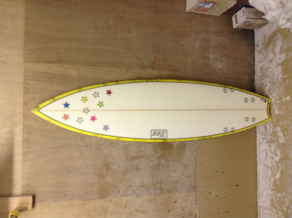 一覧 ショートボード ギャラリー 展示品サーフボード 展示品サーフボードです。 サイズ 5.8 181/2 2 1/2 適度な厚みと長さがあるので、テイクオフは 速めです。加速と小回りが効く操作性が魅力です。 展示品に付き特別価格にて販売します。 ¥48,000+消費税+送料 但しFINは付きません。 « オーダーメイドサーフボード ギャラリー一覧 初心者用サーフボードです。 » カテゴリ 全て ショートボード
